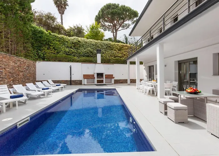 Proposant un emplacement à moins de 20 minutes de la Église paroissiale de Sant Roma, Villa Palmbeach de 520 m^2 est aussi à 5 minutes de marche de Can Xardo. Cette villa de vacances comprend des chambres dotées d'un patio, un espace de repas et une TV avec chaînes satellitaires.
